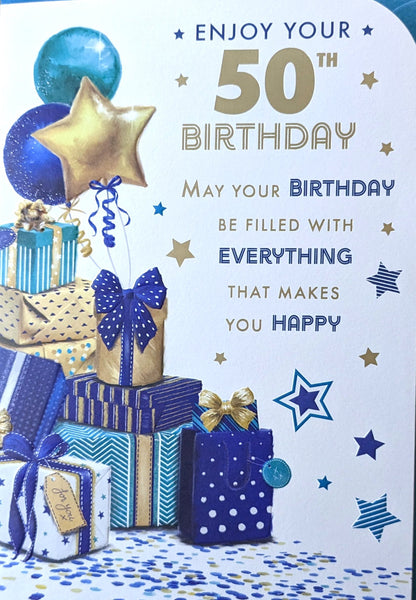 50 Birthday Male Gift Boxes & Balloons – Cards Delights